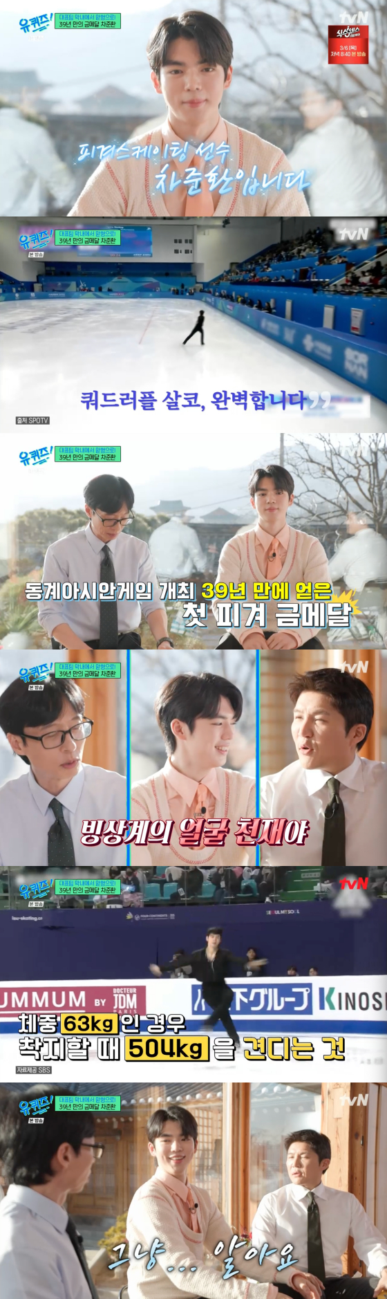5일 방송된 tvN 예능 프로그램 '유 퀴즈 온 더 블럭'(이하 '유퀴즈')에는 대한민국 남자 피겨 최초 금메달리스트 차준환 선수가 출연했다.