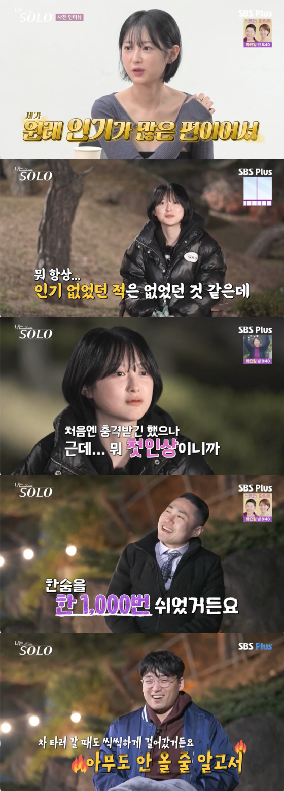 '나는 솔로' 25기 순자가 첫인상 몰표를 받았다. 이성에게 인기가 많다고 자부하던 영자는 0표라는 결과지를 받아들었다.