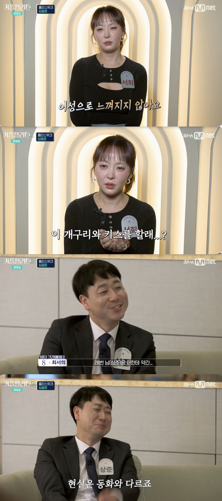 하지만 이어진 인터뷰에서 최서희는 "(남자 28번분은) 너무너무 좋은 분인데 이성으로 느껴지지 않는다. 28번님은 저한테 개구리 왕자님 같다. (동화에서처럼 누군가가 나에게) '이 개구리와 키스를 할래?'(라고 해도) 현실은 동화와 다르다"라며 솔직한 마음을 고백했다.