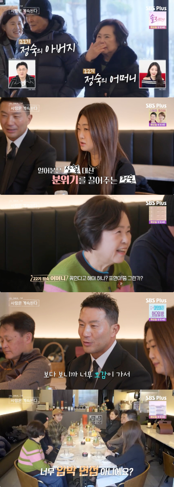 6일 방송된 ENA, SBS플러스 예능 프로그램 '나는 솔로, 그 후 사랑은 계속된다'에서는 10기 상철과 22기 정숙 부모님의 첫 만남이 그려졌다.