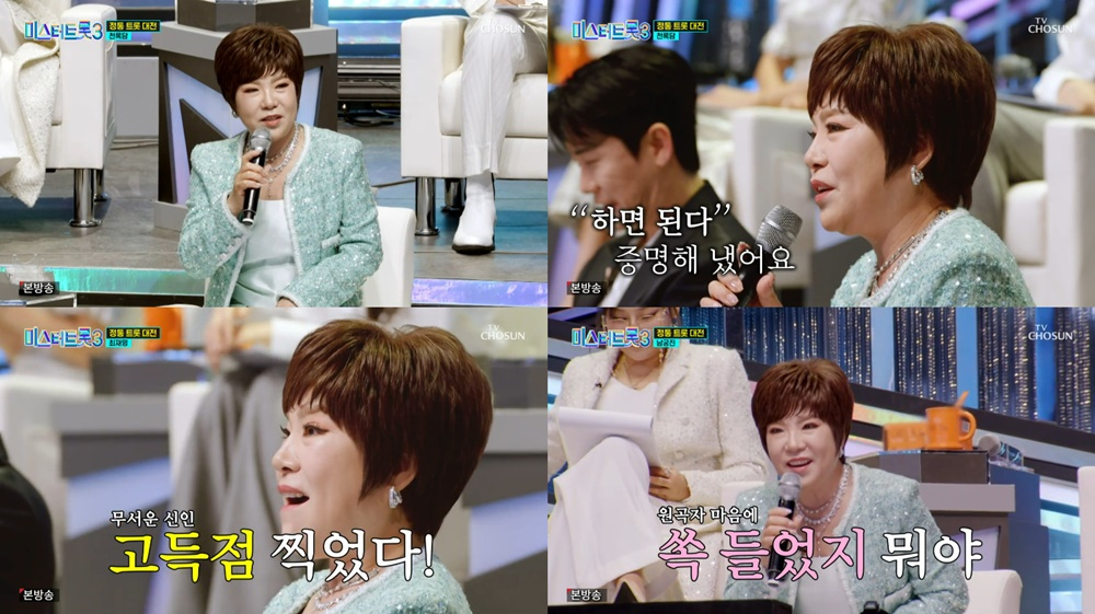 앞서 참가자들의 실력에 연신 감탄하며 진심 가득한 리액션과 심사평을 펼쳤던 김연자는 이번 미션에서도 후배들을 향한 남다른 애정을 보여줬다. 실력파 참가자들의 다채로운 무대에 깊게 몰입한 김연자는 매 무대에서 공감을 자아내는 리액션과 심사평을 이어갔다.