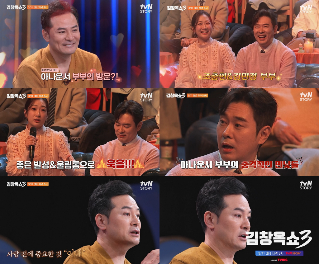 '김창옥쇼3'에 대한민국 대표 아나운서 부부 조충현, 김민정이 출격, 뜻밖의 고민 상담에 나선다.