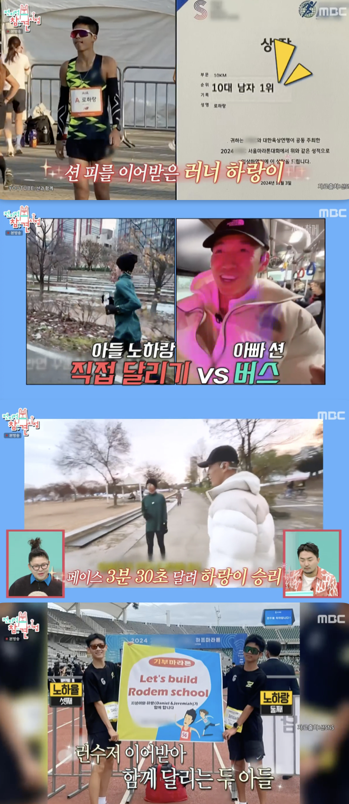 심으뜸이 션에게 "하랑이랑 하율이도 계속 뛰는 거냐"라고 물었고, 션은 "그렇다"라며 두 아들들의 타고난 '런수저(러닝+금수저)'를 셀프 인정했다.