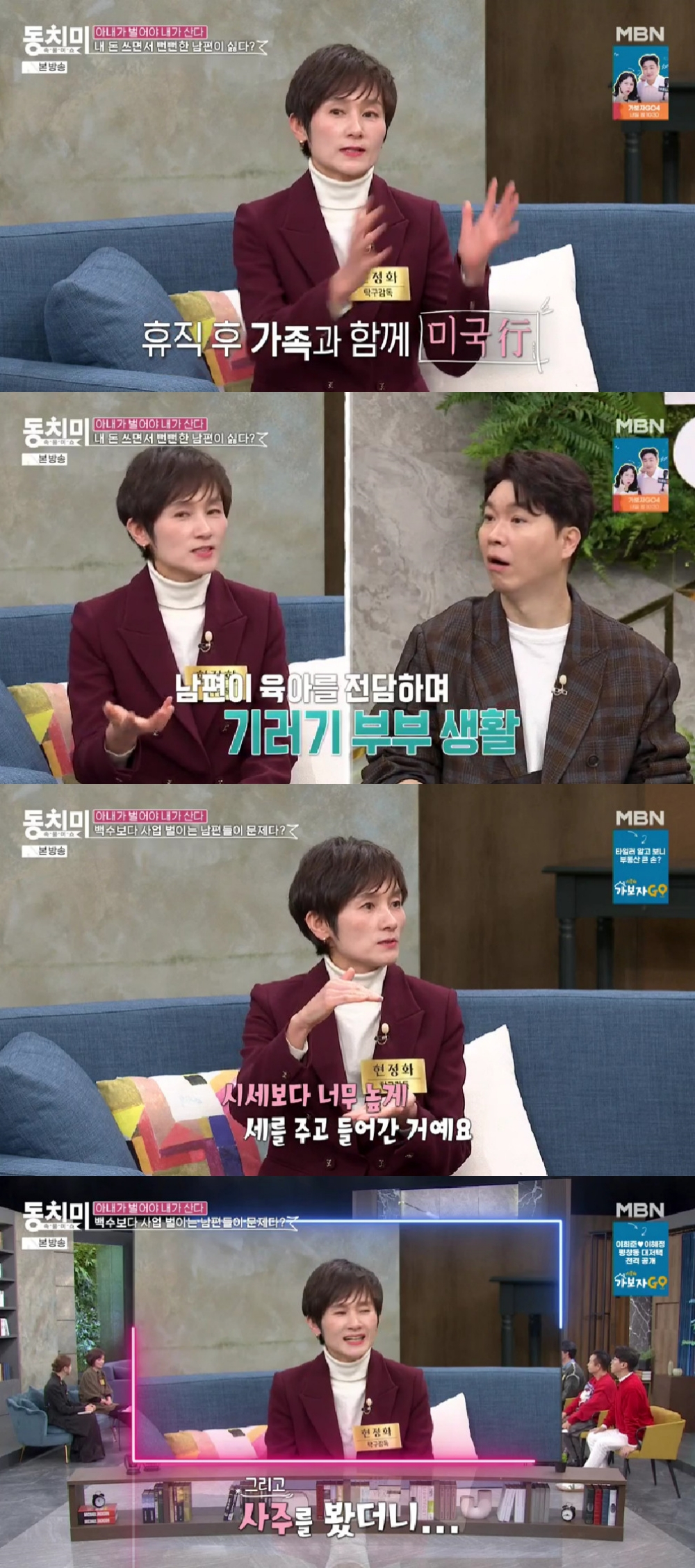 이날 현정화는 "남편도 함께 탁구 선수 생활을 했고, 은퇴 후 10년 동안 대표팀 감독 생활을 하다가 휴직 후 가족과 미국을 갔다. 1년간 미국 생활 후 생계가 걱정되더라. 아이들이 어렸는데 미국 교육 환경이 좋았다. 누군가는 미국에 남아서 자녀들 교육을 하고, 누군가는 한국에 가서 돈을 벌어야 했다. 근데 제가 (돈을 버는 게) 좀 낫겠더라"라고 밝혔다.