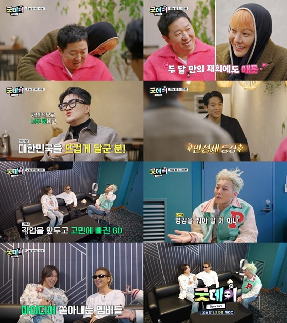 9일 방송되는 MBC 예능 프로그램 '굿데이'(Good Day) 4회에서는 올해의 노래를 완성하는 음악 프로젝트를 위해 홍진경, 안성재 셰프, 세븐틴 유닛 부석순, 빅뱅 등 다양한 분야의 인물들을 만나는 지드래곤의 이야기가 그려진다.