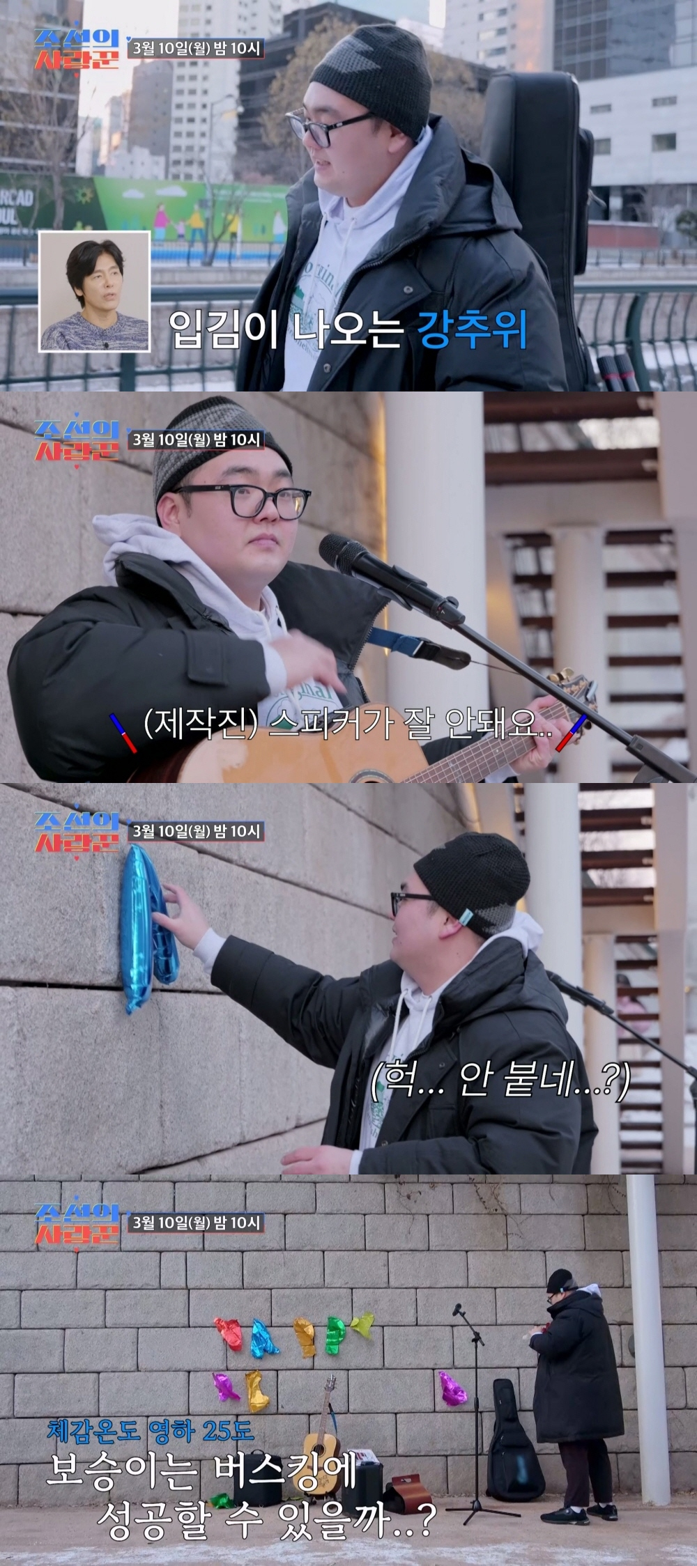 또, 버스킹 장소를 꾸미기 위해 준비한 생일 축하용 풍선마저 찬 바람에 자꾸만 벽에서 떨어졌다. 과연 손보승이 야심 차게 준비한 '엄마 생일 파티'는 계획대로 성공할 수 있을지 주목된다.