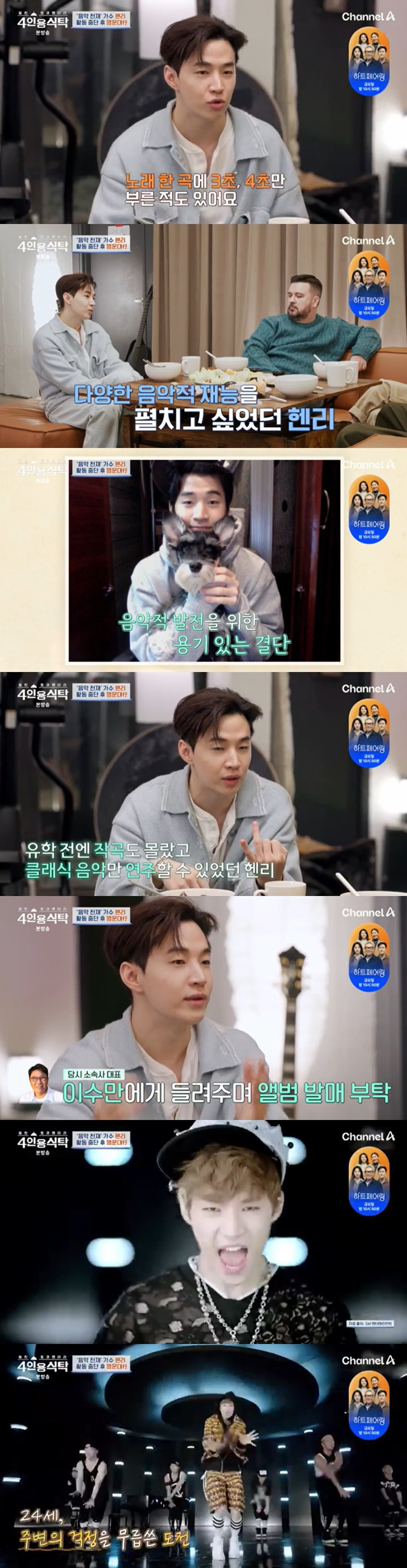 헨리는 슈퍼주니어 데뷔 직후 힘든 시기가 있었다며 "사실 그때 제가 보여줄 수 있는 게 없었고 노래 한 곡에 3, 4초만 불렀다. 다 포기하고 미국 유학을 결심했고 버클리 음대에 갔다. 그때가 아마도 제 인생에서 가장 무서웠던 순간이었을 거다"라고 했다.