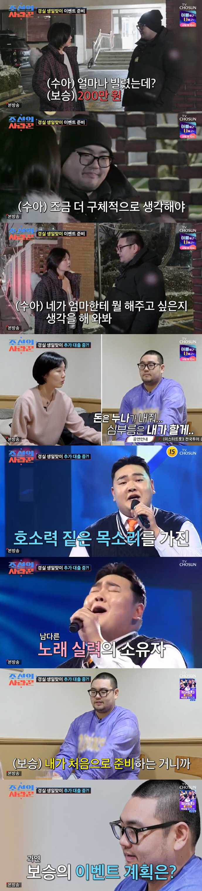10일 방송된 TV조선 '조선의 사랑꾼'에서는 엄마 이경실에게 200만 원의 생활비를 꾼 손보승이 누나 손수아를 불러낸 뒤 금전적 도움을 부탁했다.