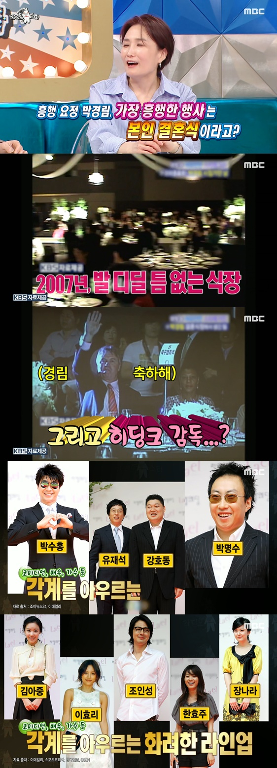 박경림은 수 많은 결혼식의 사회를 맡았지만 그중 가장 큰 흥행을 한 결혼식은 박경림 본인의 결혼식이였다. 2007년 열렸던 인맥왕인 박경림의 결혼식에는 개그맨, 배우, 가수 뿐 아니라 정재계 인사까지도 모두 총출동했다. 이명박 전 대통령을 비롯해 히딩크 감독은 물론 수 많은 연예인이 참석했다. 무려 5000만원 하객이었다.