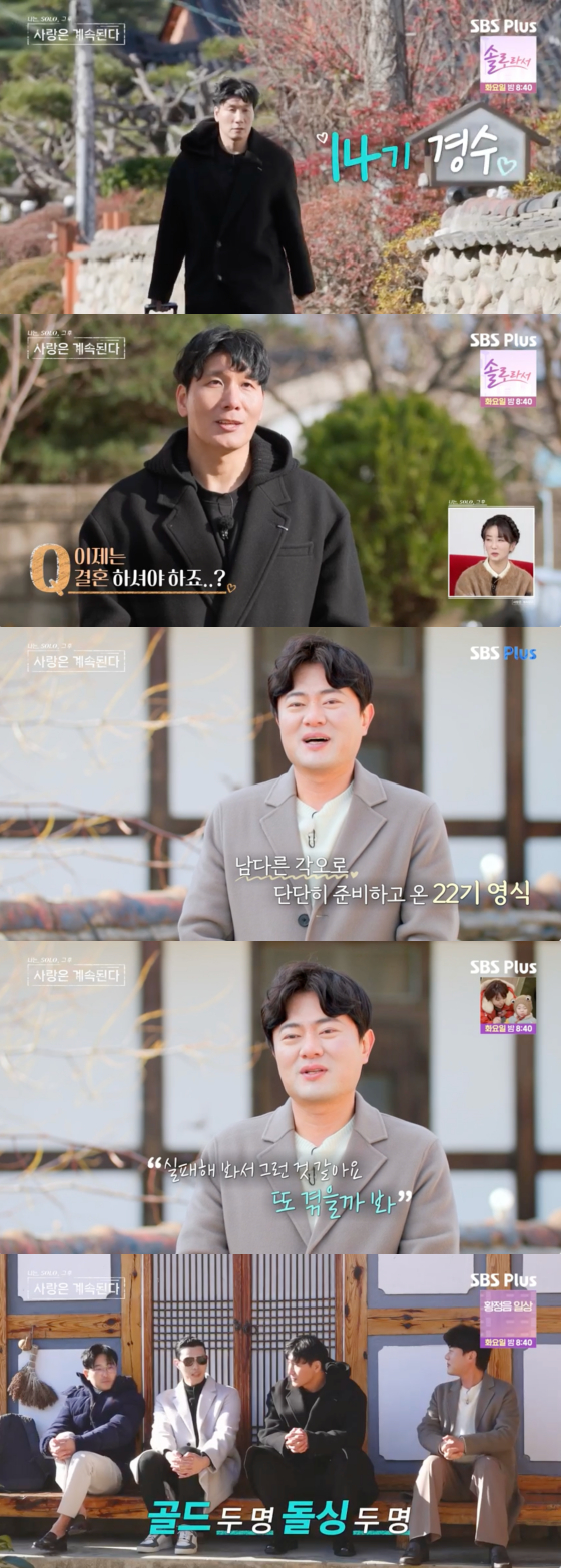 14기 경수는 "계속 연애에 실패하니까 결혼한 분들이 존경스럽다. 결혼하는 건 기적인 것 같다. 나의 진심이 느껴지도록 어필하며 좋은 짝을 만나고 싶다"고 의지를 다졌다.
