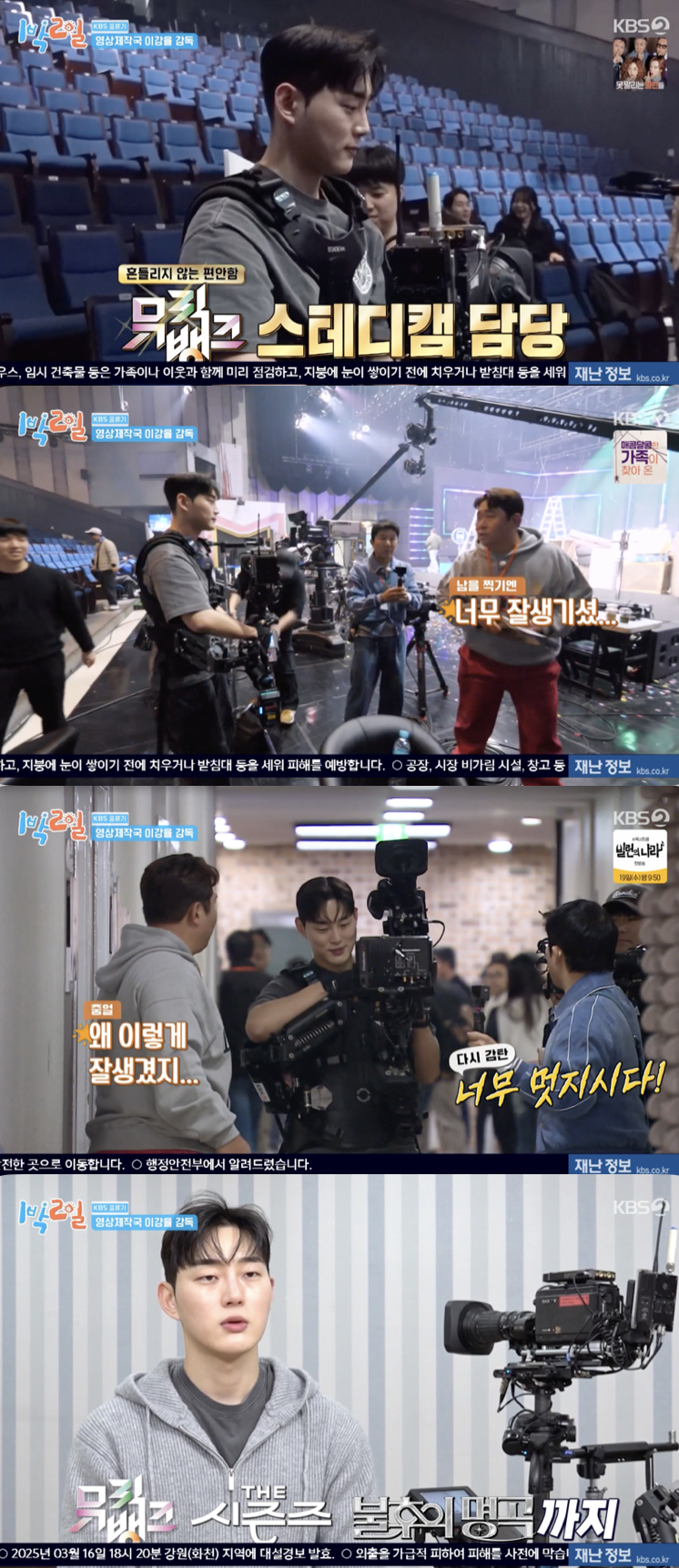 '1박 2일'에서 문세윤이 KBS 원테이크 카메라 감독 비주얼에 감탄했다.