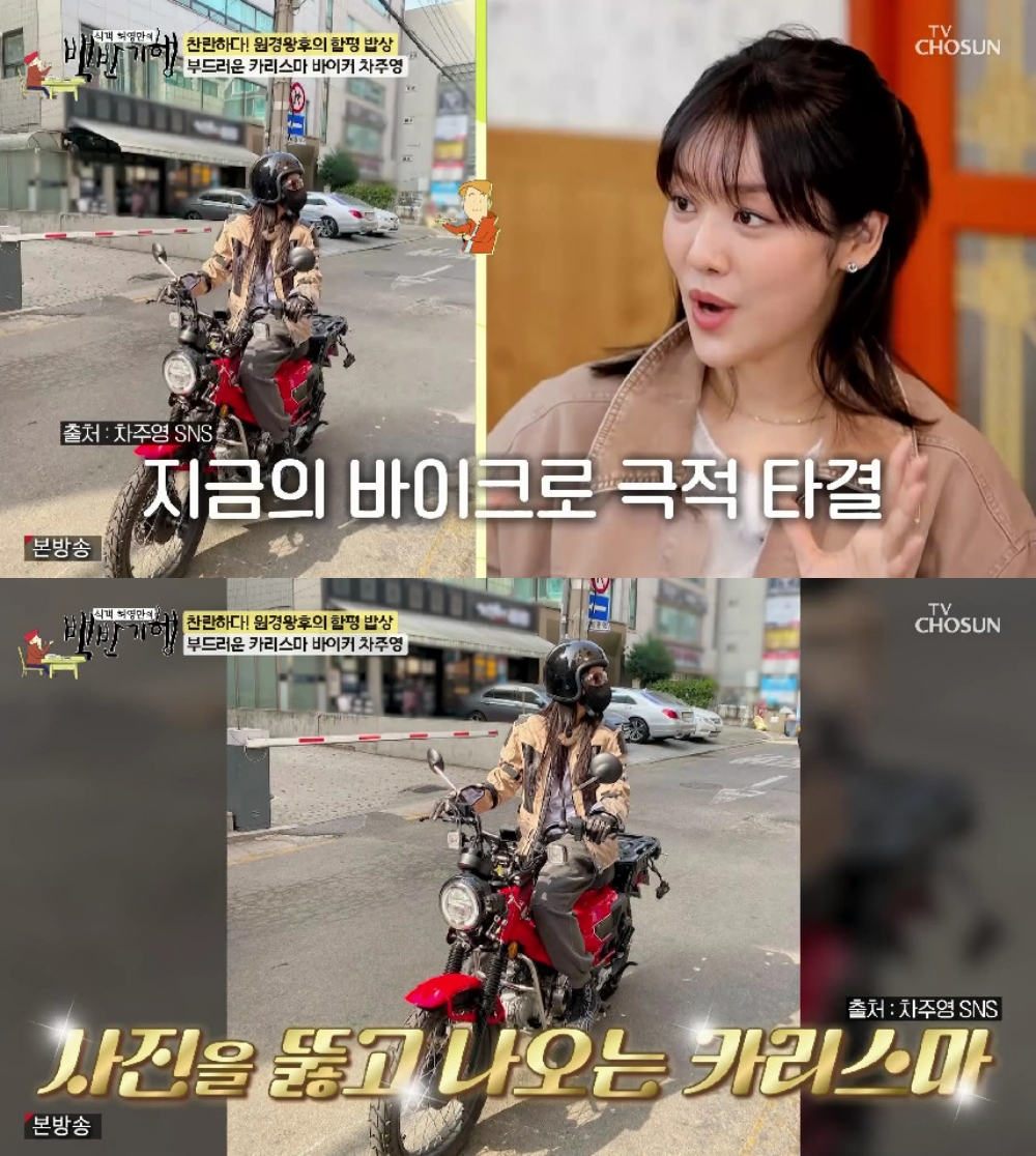 차주영은 특별한 취미를 전하기도. 그는 "바이크 탄 지 몇 년 됐다. 원래 큰 바이크를 타고 싶었다. 소속사와 말려서 지금의 바이크로 극적 타결했다"며 "떡볶이 먹고 싶은데 마감 시간이 임박해서 바이크 타고 떡볶이 집을 갔더니 배달하시는 분들이 다 와계시더라. 저도 배달하는 사람처럼 포장해서 왔다"고 말했다.
