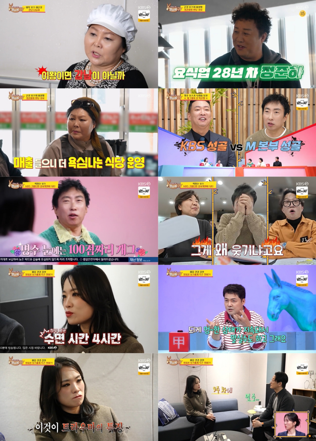 박명수 보스가 KBS 공채 코미디언 오디션의 심사위원으로 나섰다. '갈갈이' 박준형과 신윤승을 불러 모은 박명수에게 박준형은 과거 오디션에서 총 8번 떨어졌다고 고백했다. 박준형은 심현섭, 강성범과 대결해서 낙방했던 아픔을 딛고 마지막으로 응시한 KBS 오디션에서 주유소에 있던 주유총을 빌려가 합격했던 일화를 공개하며 "개그는 정성이다"고 말했다. 이어 "오디션 심사를 하면서 입장부터 강렬한 인상을 준 건 오지헌, 합격 3초컷의 개그맨 인상이다"면서 "이후에도 김영철, 정종철, 박휘순 등은 압도적 비주얼로 개그맨 오디션에 합격했다"고 밝혀 폭소를 안겼다. 박준형은 즉석에서 무 갈기 시범까지 보이며 "전성기 때 한 달에 3억 벌었다"고 밝혀 놀라움을 안겼다. KBS 공채 오디션 장으로 이동한 박명수는 후배 코미디언, PD, 작가들과 함께 지원자들을 맞았고, 다른 심사위원들과는 다른 포인트에서 홀로 웃음을 터뜨려 원성을 샀다. 기준 없이 웃기만 하고 청개구리 심사를 하는 박명수 때문에 담당 CP는 "합격점을 남발하는 박명수가 웃으면 걸러도 되겠다"면서 "3차 오디션 때는 원래 KBS 스타일대로 뽑을 것"이라고 선언해 웃음을 안겼다.