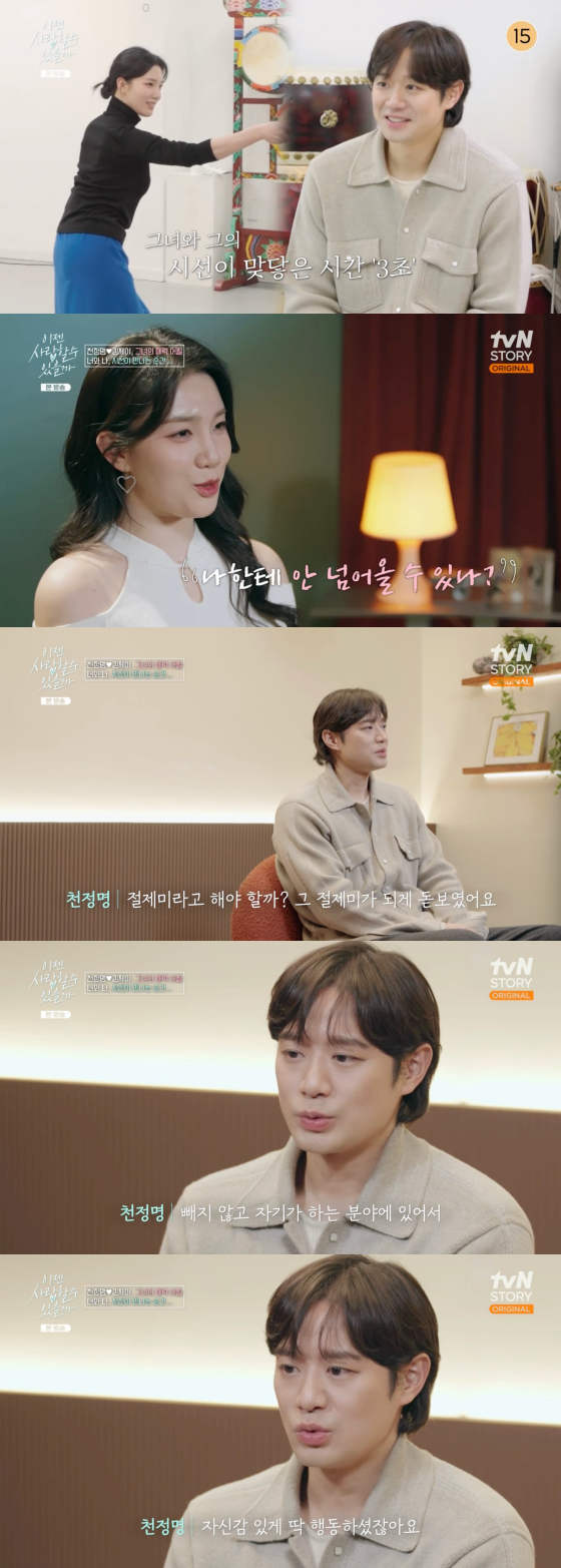 17일 방송된 tvN STORY 예능 프로그램 '이젠 사랑할 수 있을까'에서는 천정명과 한국 무용가 김제이가 데이트를 하는 모습이 그려졌다.