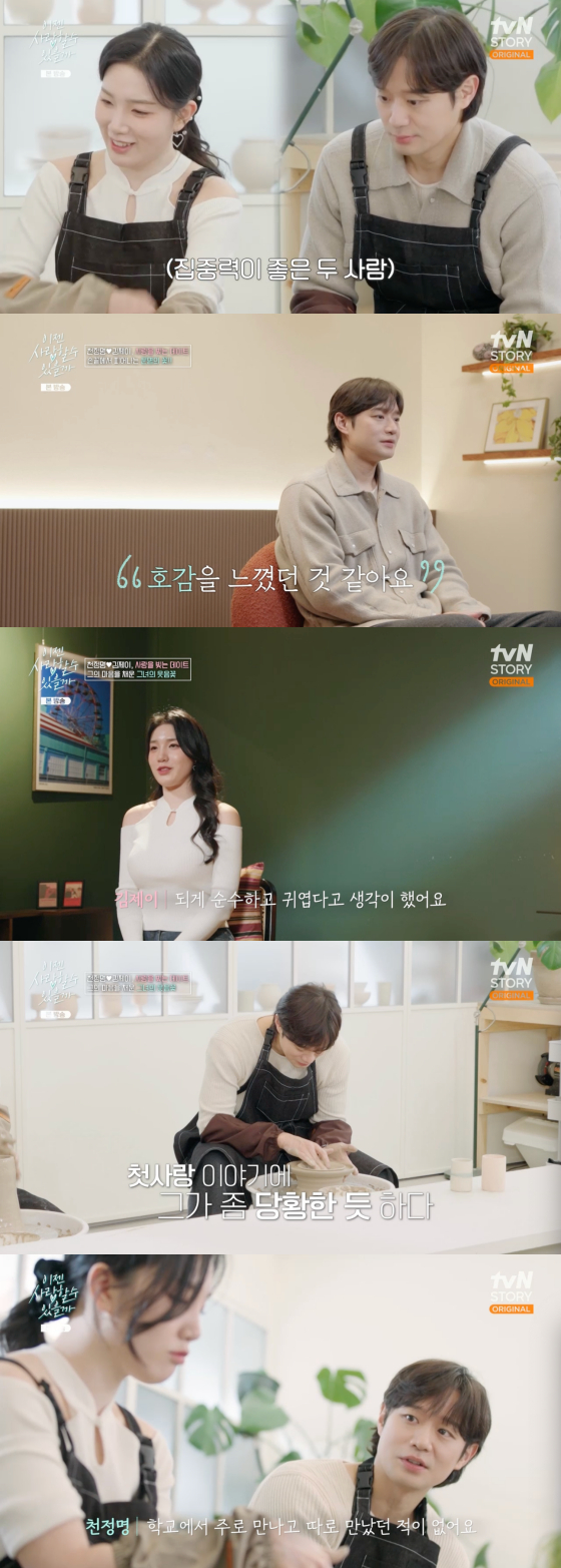 배우 천정명과 한국 무용가 김제이가 도예 데이트에서 서로에 대한 호감을 느꼈다.