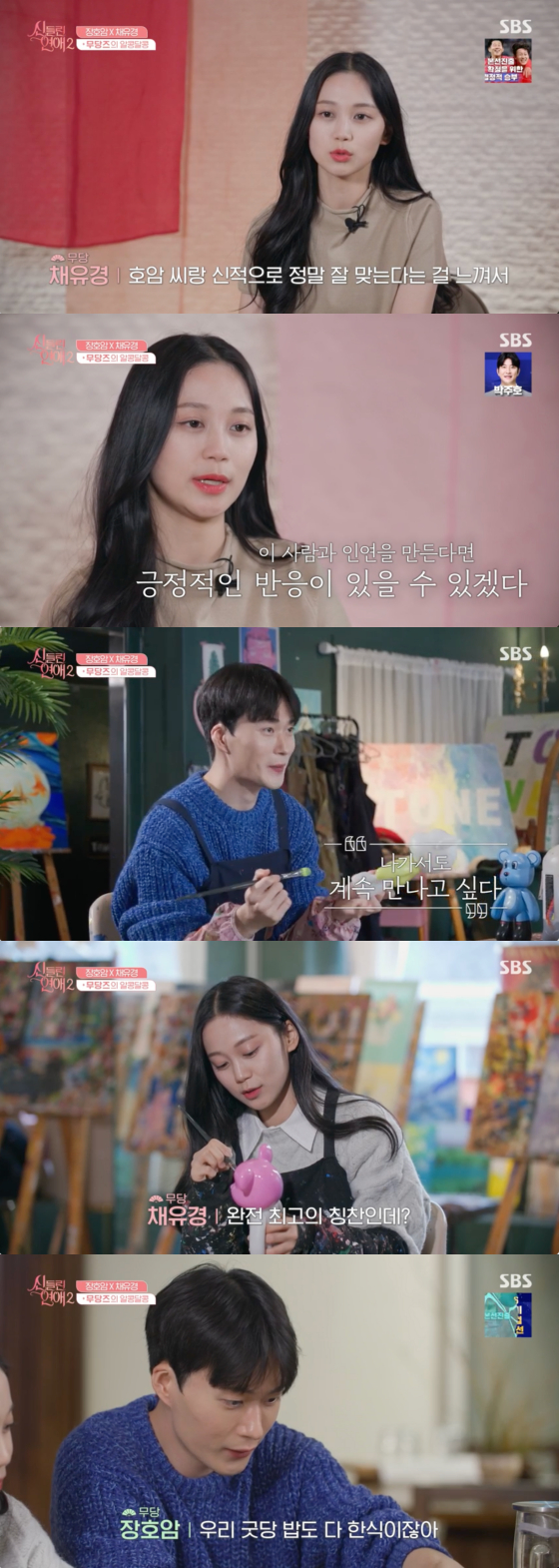 채유경 또한 "(장호암과) 신적으로 정말 잘 맞는다는 느낌을 받았다. 이 사람과 인연을 만든다면 긍정적인 반응이 있을 수도 있겠다는 느낌"이라고 장호암과 데이트에 만족감을 표했다.