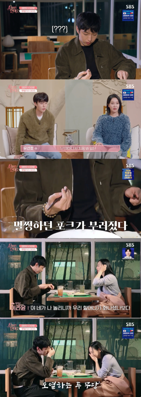 무당 정현우와 무당 이라윤의 데이트에서 포크가 두 동강 나는 일이 벌어졌다.