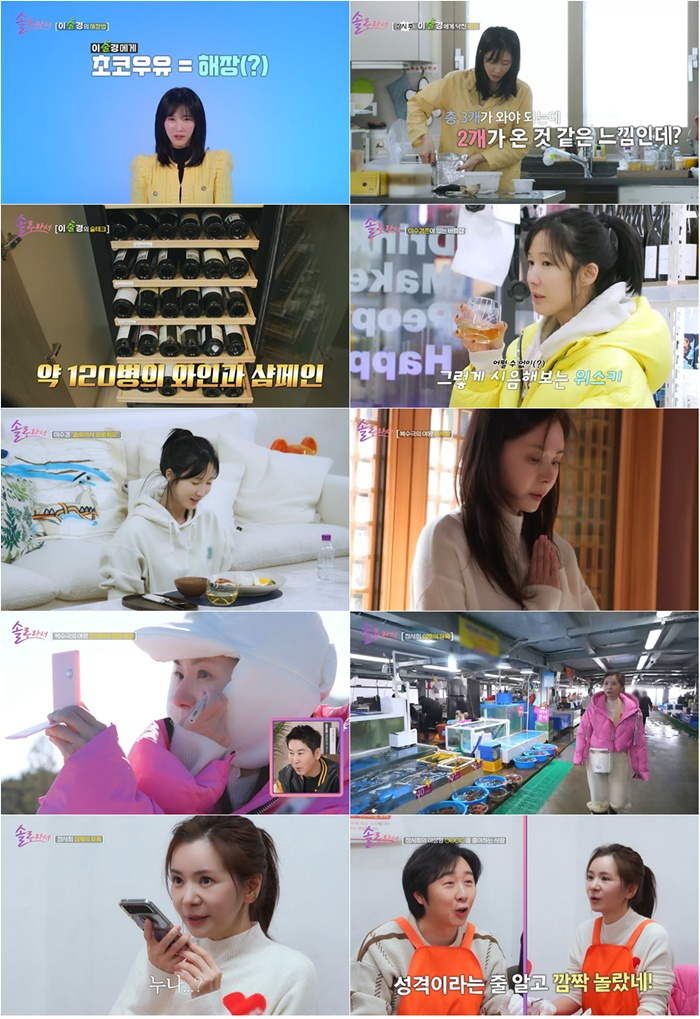 이수경은 침대에서 기상하자마자 곧장 화장실로 향했다. '솔로 언니'들의 모닝 루틴이 세안인 것과 달리, 이수경은 구토 소리와 함께 '모닝 숙취'를 공개해 스튜디오를 초토화 시켰다. 이수경은 "사실 어제 술을 좀 마셔서 밤새 죽었다 살았다를 반복했다"고 실토했다. 이어 그는 "제 별명이 이술경이다. 귀엽지 않나?"라며 웃었다. 평양냉면을 주문해 냉면 육수로 해장을 마친 이수경은 와인셀러를 열어 '5대 샤또'를 보며 뿌듯해했다. 무려 120병에 달하는 와인은 물론, 수천 만 원대 위스키까지 보유한 '이술경의 술 컬렉션'에 '짠한형' 신동엽은 "대단하다 정말!"이라며 찐 감탄했다. 황정음 역시 "바틀숍을 하셔도 될 것 같다"고 놀라워했으나, 이수경은 "내가 다 마셔버릴까 봐 바틀숍은 못 할 것 같다"고 고개를 저어 웃음을 더했다.