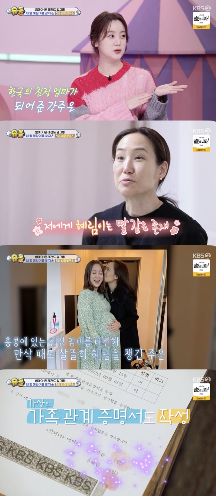 한편 30년 전 유산으로 딸을 잃은 적 있다 고백한 강주은은 혜림은 가슴으로 낳은 딸이라 밝히며 애틋함을 드러냈다. 두 사람은 가상이지만 프로그램에서 모녀 관계로 살아가면서 가상의 가족관계증명서도 작성했다고 덧붙였다.