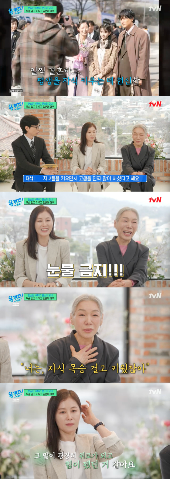 문소리는 "엄마가 지나가면서 '너희 키울 때 목숨 걸고 키웠다'는 말을 했다"고 떠올리자 이향란은 눈물을 흘리며 "사실 그 말은 우리 엄마가 나한테 해 준 말이다. 친정 엄마가 나를 알아주더라"고 털어놨다.