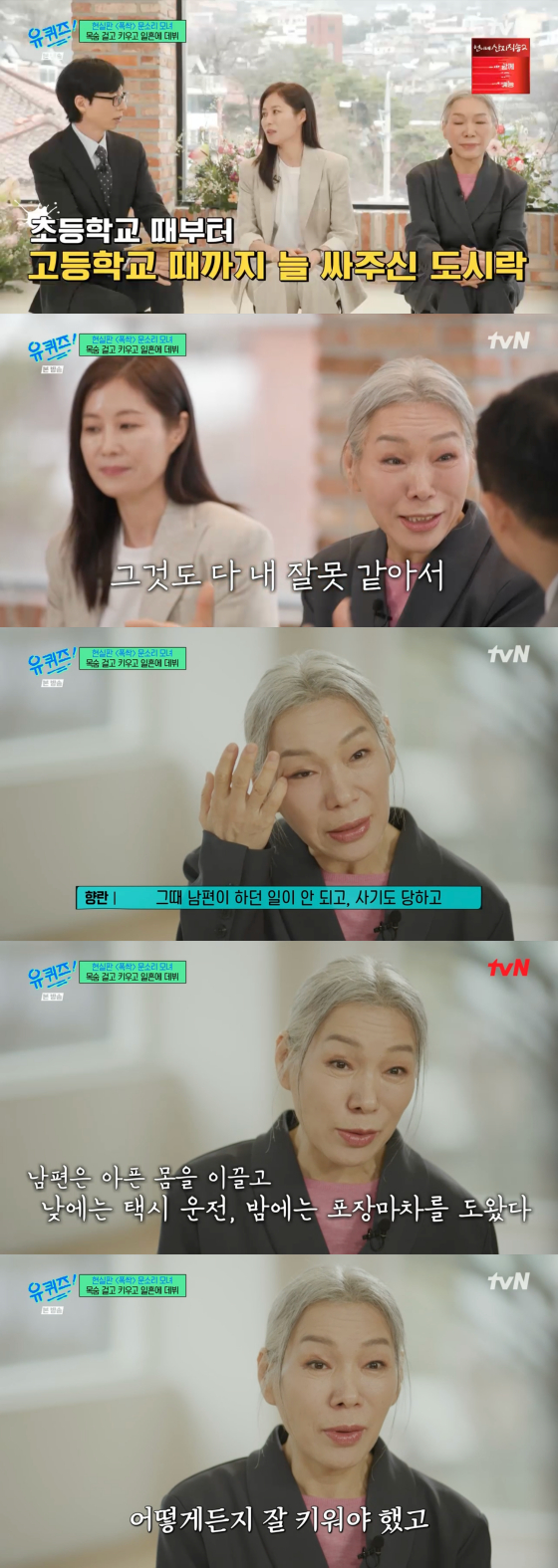 이어 "남편이 하던 일이 잘 안 되기도 하고 사기도 당했다. 시장 장사도 하고 토스트 장사도 하고 포장마차도 하니까 주변 사람들이 나한테 남편이 없는 줄 알았다. 동 틀 때 집에 들어가서 애들 밥 먹여 학교 보내고 3시간 정도 자면서 일했다. 그땐 고달프다는 생각 자체가 사치였다. 어떻게든지 아이들을 잘 키웠어야 했다"고 말했다.