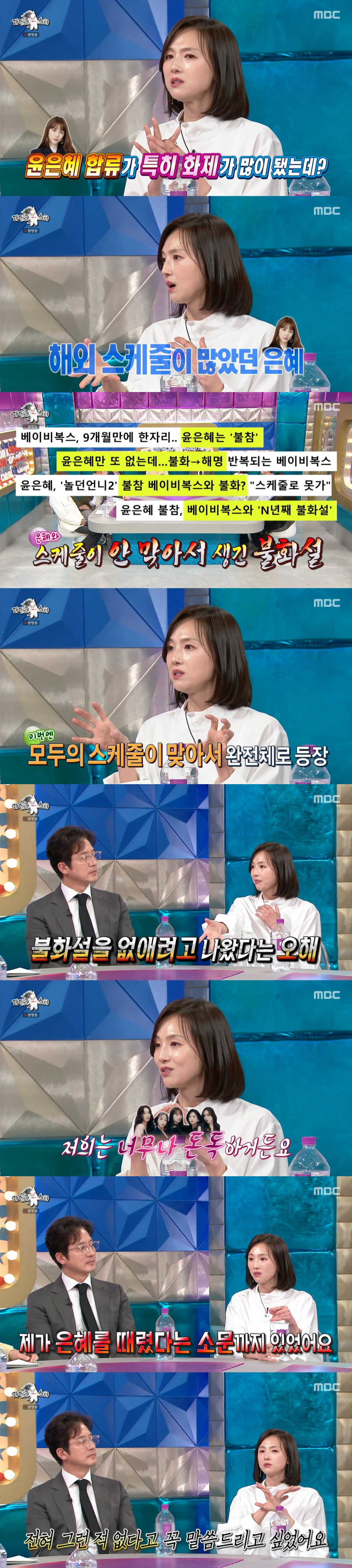 걸 그룹 베이비복스(Babyvox) 멤버 이희진이 윤은혜 폭행설과 팀 내 불화설 등을 해명했다.