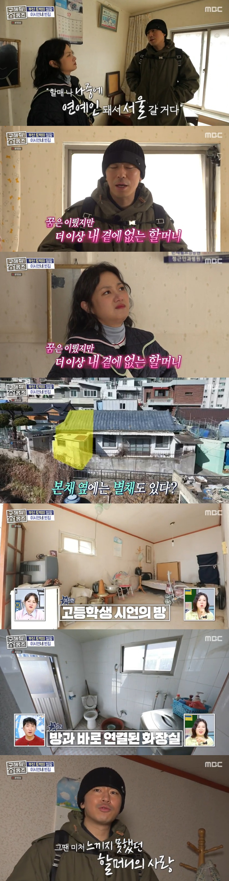 집 안은 이시언의 할머니가 살았던 흔적 그대로 남겨져 있었다. 이시언이 살았던 별채도 그대로 있었다. 이시언은 "할머니가 매일 아침 나 머리 감으라고 물을 끓여서 주셨다"라고 추억을 떠올렸다.