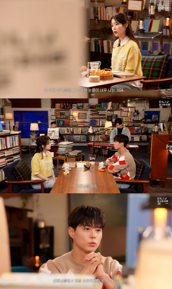 이날 아이유는 "우리가 만난 대주제는 '폭싹 속았수다'. 우리가 함께 나온 드라마에 관해 이야기를 안 할 수가 없다. 어디까지 봤냐"며 "나는 어젯밤에 13화까지 보고 잤는데 진짜 많이 울었다. 오늘 아침에 일어났는데 눈이 부었다. 애순이와 관식이가 장년이 돼서 나오는 이야기들이 이제 주가 돼서 나오더라. 못 봤던 장면들이 나오는데 너무 눈물이 나오더라"라고 말했다.