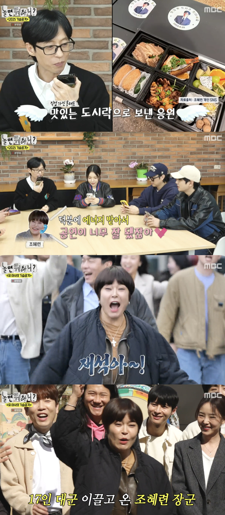 이에 조혜련은 "네가 우리한테 맛있는 거 쏴줬잖아. 덕분에 우리가 에너지를 받아서 너무 잘 됐다. 나는 재석이 '유 라인'이잖아"라고 연극 단원들을 살뜰히 챙긴 유재석의 깜짝 미담을 전했다.
