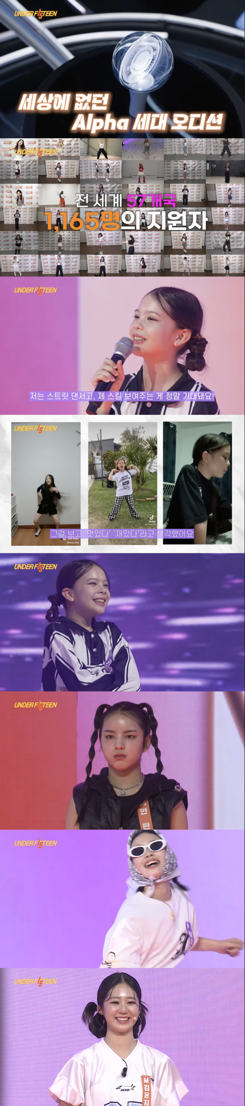 이에 제작진은 지난 23일 '언더피프틴'은 공식 계정을 통해 31분 분량의 선공개 영상을 공개했다. 전 세계 57개국 1,165명 지원자 중 선발된 59명 참가자 가운데 일부 참가자의 영상을 전하며 이른 나이부터 자신의 꿈을 K-POP 아이돌로 확실하게 정한 K-POP 신동들의 확고한 실력과 열정, 노력과 간절함을 전한 것.