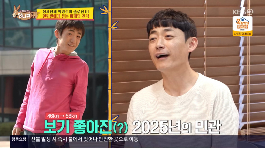 한민관도 "나도 한번 망했다. 막창으로 날렸다. 멋 모르고 사업했다. 그때 월세가 1200만원이었다. 1인분 1만2000원이라는 금액이 대학가라는 점에서 비쌌다. 결국 깔끔하게 1억 4000만원 날렸다'라고 답했다. 이어 "지금 몸무게가 58kg인데 인생 최고 몸무게다. 예전에는 46kg이었다. 솔직히 돈 벌기 제일 쉬운 건 방송일이다"라고 말했다.