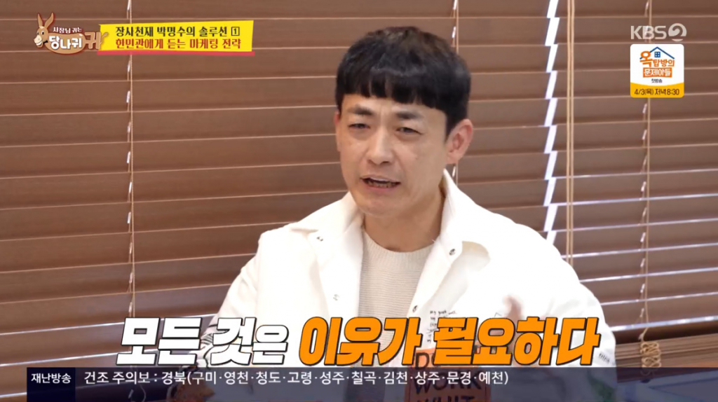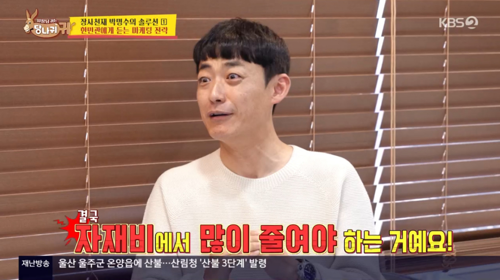 23일 방송된 KBS 2TV '사장님 귀는 당나귀 귀'에서는 메이저리거 출신 김병현이 최근 오픈한 양재점 햄버거 가게에 박명수가 출동해 긴급 점검에 나서는 모습이 공개됐다. 김병현은 지난해 "3년간 손해액 2억"이라고 밝히며 햄버거 가게를 페업한 후 마지막 도전이라며 다시 양재동 지하 푸드코트에 양재점을 오픈했고 박명수는 김병현의 햄버거 가게 점검에 나섰다.