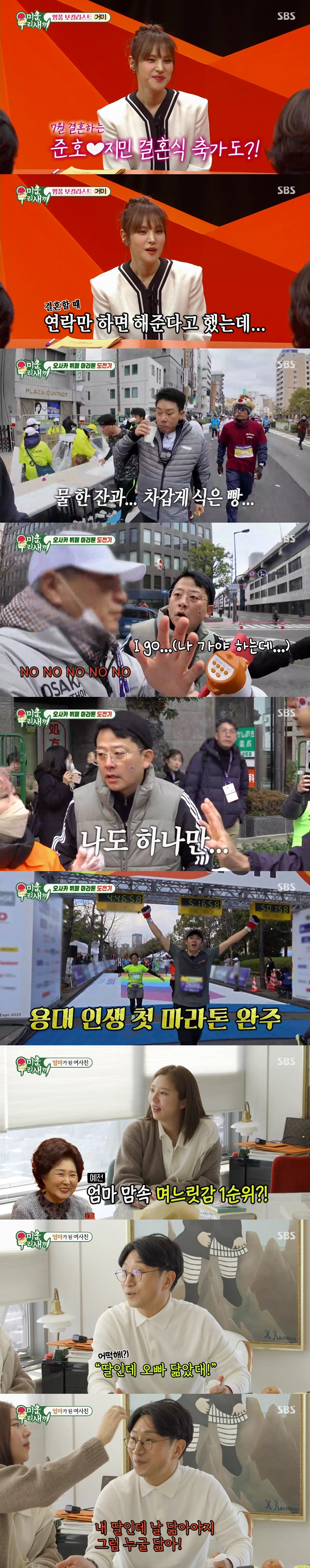 김준호, 이상민, 이용대의 '오사카 마라톤 도전기' 2탄이 공개됐다. 구간마다 제공하는 다양한 간식들로 화제가 되는 '뷔페 마라톤' 콘셉트에 놀란 세 사람. 그러나 정해진 시간 안에 구간을 통과하지 못하면 탈락하는 룰에 스튜디오에서는 걱정의 목소리가 나왔다.