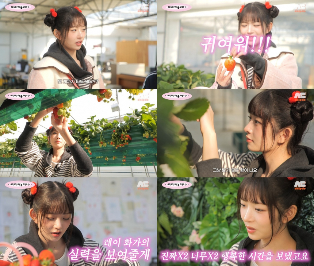 'MZ 워너비 아이콘' 아이브(IVE) 레이가 딸기 농장에서 힐링 가득한 시간을 보냈다.
