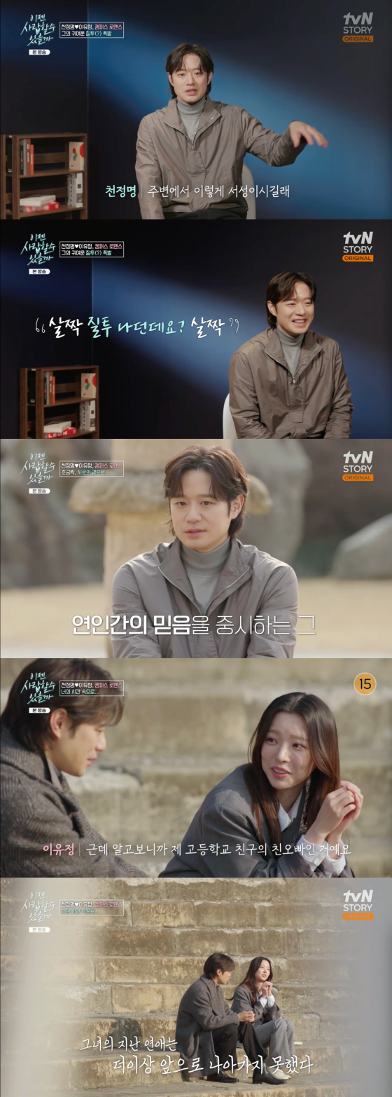 다시 대화를 이어가던 두 사람은 연애 관련 질문을 주고받았다. 이유정이 "연인 간 용납 안 되는 건 뭐냐"고 묻자 천정명은 "연락 안 되는 것"이라고 즉답했다.