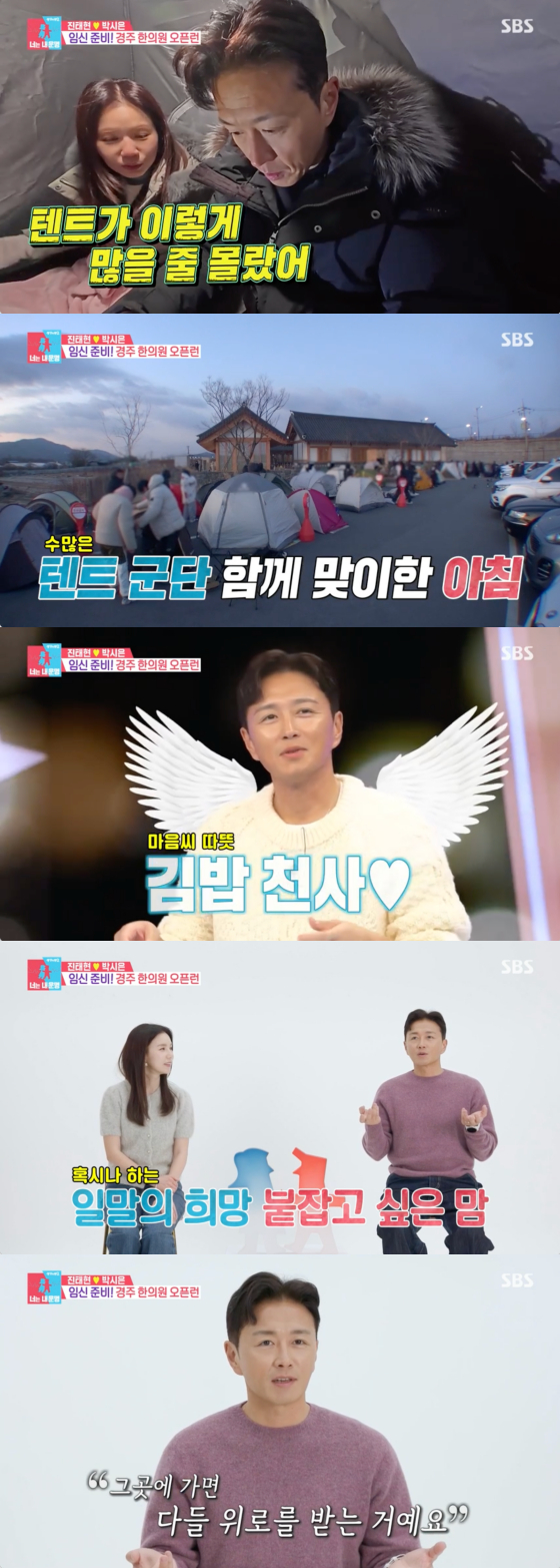 이날 진태현과 박시은은 이른 오전부터 경주에 위치한 난임 전문 한의원 오픈런에 나섰다. 해당 한의원은 오픈 전부터 임신을 기원하는 사람들이 친 텐트로 인산인해를 이뤘다.