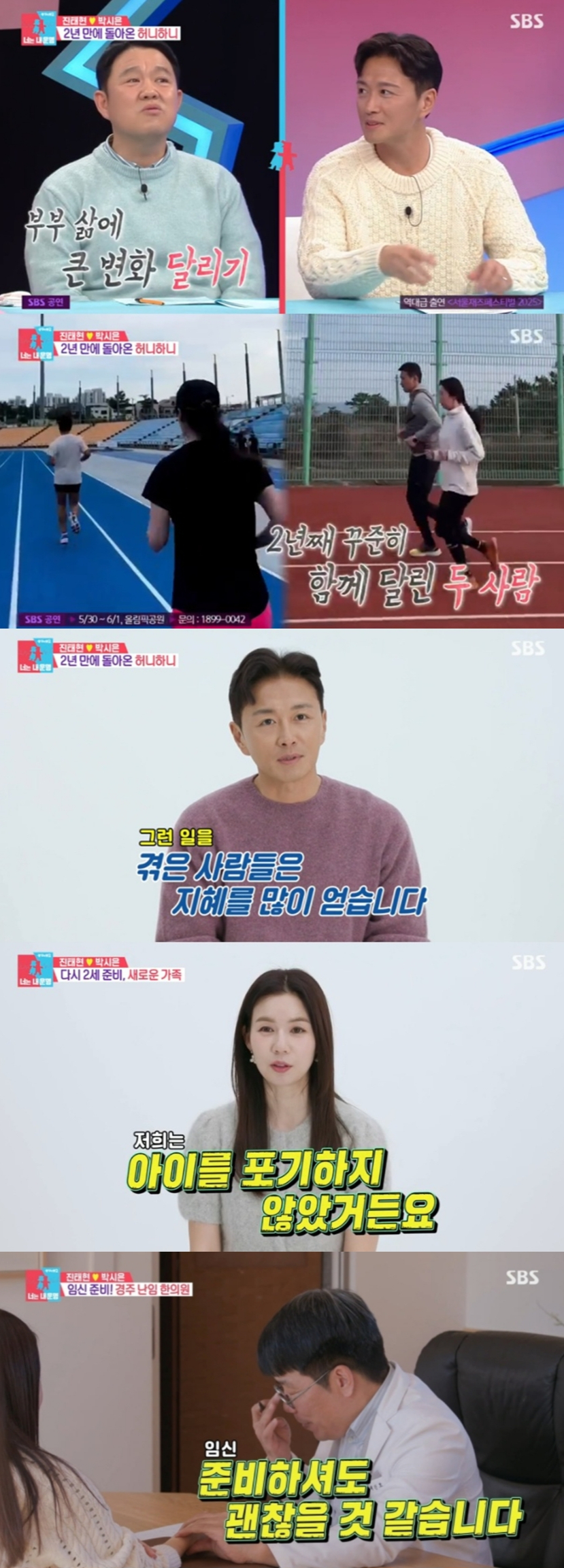 진태현, 박시은 부부는 2년 만에 '동상이몽2'를 찾은 만큼 그동안 달라진 근황도 공개했다. 박시은은 "삶의 많은 부분을 차지하게 된 달리기를 시작하게 됐다"며 "많은 분들이 저희가 (임신을) 포기한 줄 아시더라. 우리는 포기하지 않았고 계속 노력하고 있다. 우리를 보시면서 포기하지 말라고 말씀도 드리고 싶어서 출연했다"고 말했다. 이후 박시은은 인생 첫 하프마라톤에 도전해 여러 번 고비를 넘기며 완주에 성공했다.