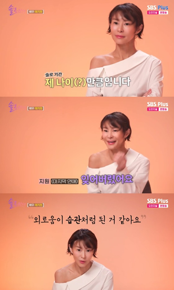 이날 예지원은 '솔로 몇 년 차냐'고 묻는 제작진의 질문에 "내 나이를 아시죠. 그만큼이다"라고 답했다.