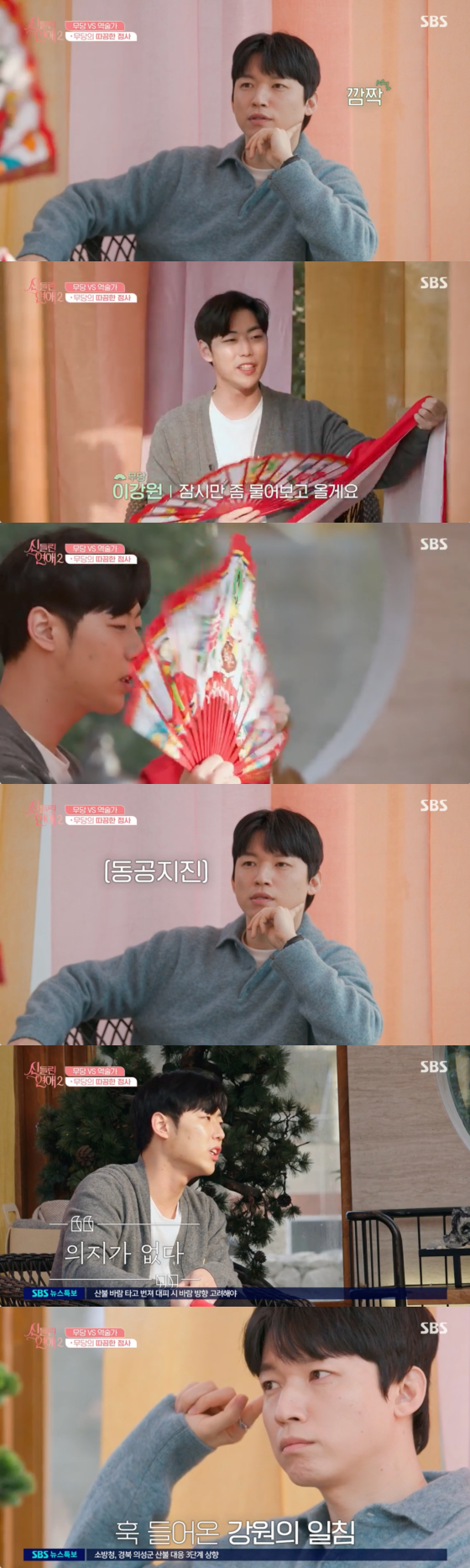 25일 방송된 SBS 예능 프로그램 '신들린 연애 2'에서는 이강원이 하병열을 따로 불러내 점사를 봐 주는 모습이 그려졌다.