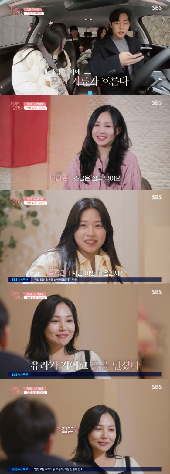 이라윤은 이강원과 홍유라가 다정하게 대화하는 모습에 대해 "조금은 질투가 났다. 내 신경은 모두 이강원한테 가 있었다"고 속마음을 고백했다.