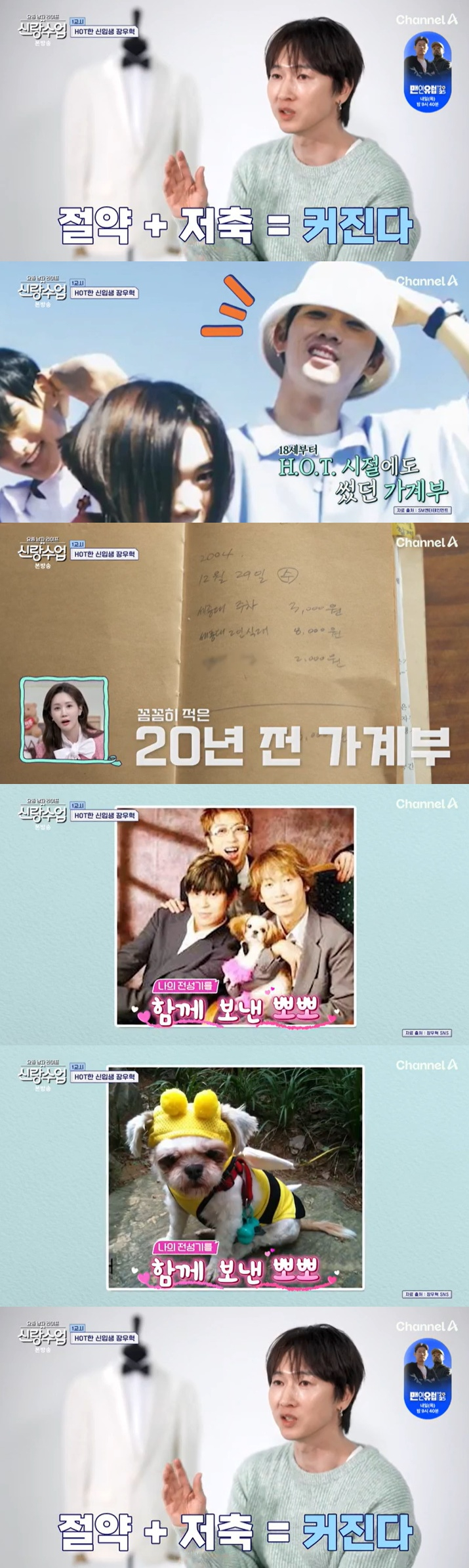 장우혁은 20년 전 H.O.T. 아이돌 시절부터도 가계부를 썼다며 "댄스가수라는 게 미래가 불투명해서 가계부를 썼다"고 밝혔다.