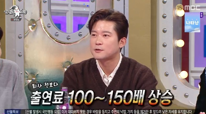 김대호는 프리랜서 이후 몸값이 천정부지로 치솟았다는 말에 "편차는 있지만 퇴사 전보다 출연료가 100배에서 150배 정도 올랐다"고 했다. 김대호는 계약금에 대해 "계약은 3년 했다. (MBC) 퇴직금보다 (현 소속사) 계약금이 더 크다"라고 말했다.