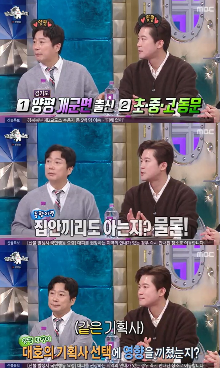김구라는 이날 이수근에게 "김대호 씨랑 고향을 매개로 한 인연이 있다고 한다"라고 했고, 이수근은 "지연을 따지면 우리가 완벽한 지연이다"라고 말했다. 이수근은 "태어난 곳도 경기도 양평 개군면이고 초, 중, 고등학교 동문이다"라고 밝혔다. 김구라가 "집안끼리도 아냐"라고 묻자 이수근과 김대호는 "다 아신다"라고 답했다.