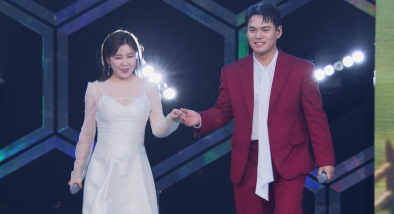 송가인과 천록담이 '미스터트롯3 갈라쇼'에서 입을 맞춘다.