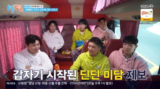 '1박 2일' 멤버들이 딘딘의 미담을 대방출했다.