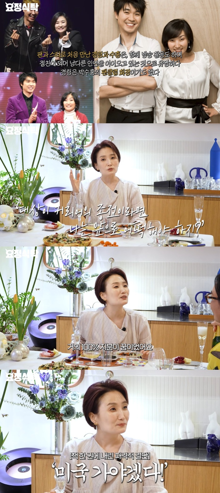 박경림은 "혹자는 제가 유학 다녀온 후 '예전만 못하다'라고 하는데 제가 여기 계속 있었으면 '내가 뭐라도 된 줄 알았을 거다"라며 "미국에서 아무도 나를 못 알아보는 걸 보고 '내가 '.'(점)도 아닌데 '-'(획)인 줄 알았구나 싶었다"라고 털어놨다. 그는 "저는 랭귀지하는 학생이었는데 미국인 3명이랑 기숙사에서 지내게 된 거다. 깊이 있는 대화는 못해도 고기 구워주고 잡채 만들어주고 쌈 싸먹으면서 정말 친해졌다. 해외 내한 스타가 와도 국적 구분이 없다. 편견을 갖고 보면 안 된다고 생각했다"고 말했다.