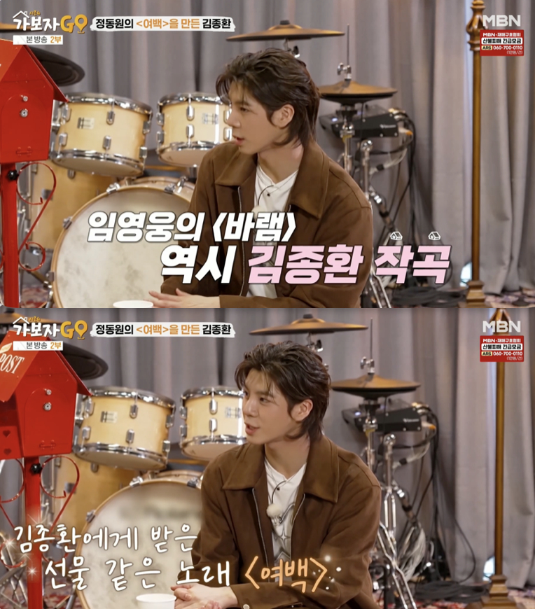 이에 정동원은 "결승전 당시 영탁 삼촌이 고른 '찐이야'도 있었다. (여러 노래 중) 다양한 노래를 고르는 거였다. 제가 '여백'을 고른 것. (임)영웅이 형이 부른 '바램'이라는 노래도 (김종환 작곡가 님이) 만드셨다"라고 비하인드를 전했다. 그러면서 "곡을 받기 위해서 정말 많은 가수들이 (김종환 작곡가 님에게) 줄을 서고 있는 정도"라고 덧붙였다.