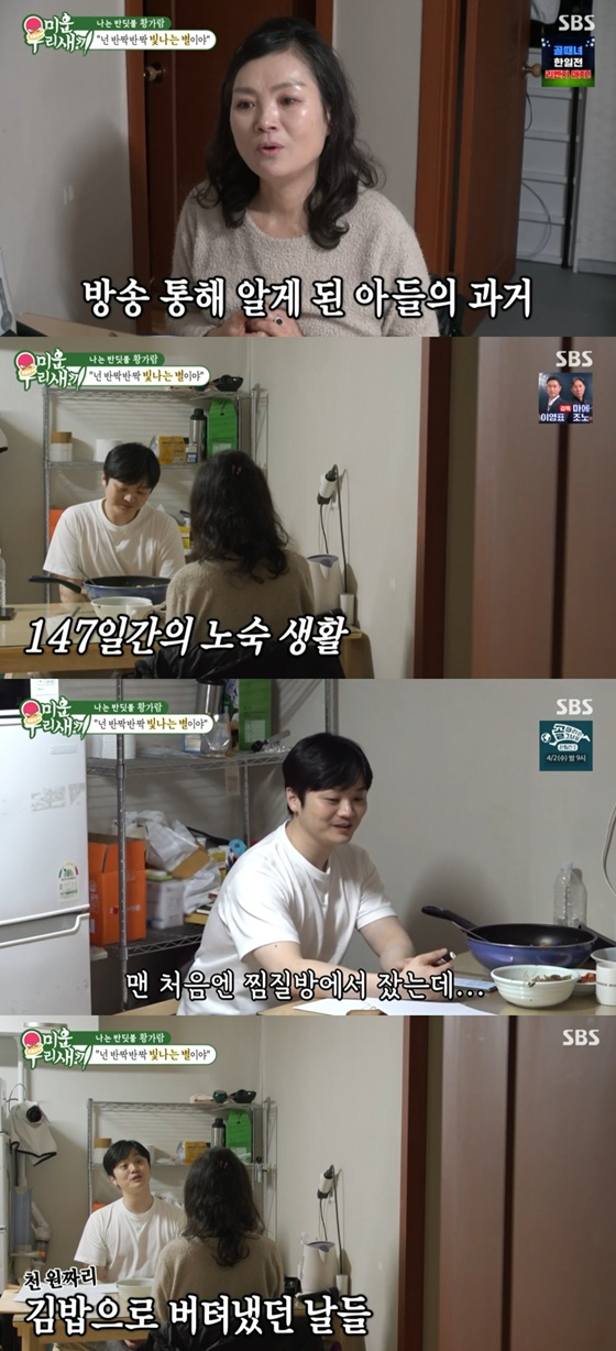 이어 "교회 같은 곳에서 계속 지낼 순 있지만, 눈치 보이지 않나. 씻는 거는 공중화장실 세면대에서 씻고"라며 "김밥이 천 원 할 때라 한 줄 먹고, 찜질방에서 몸무게를 재보니까 49gk더라"라고 밝혔다.