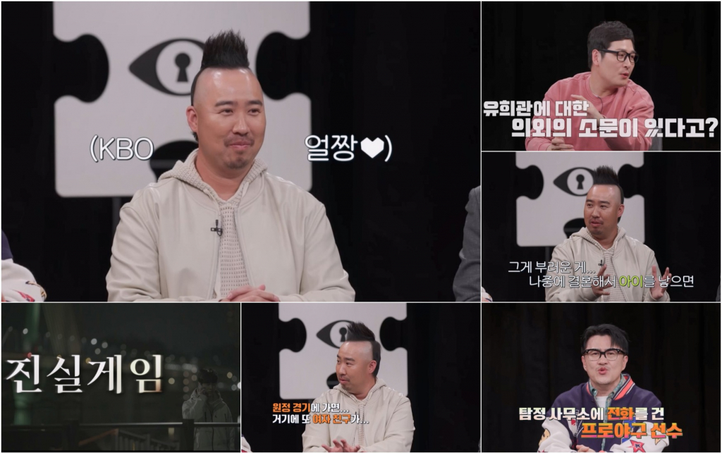 한편 이날 '사건수첩-진실게임'에는 프로야구 1리그에서 꾸준히 1군의 자리를 지켜온 실제 스타 야구선수가 아내 때문에 탐정사무소를 찾아온 실화가 재구성됐다. 실제 프로야구 선수의 이야기란 사실에 유희관은 "야구선수는 스프링 캠프, 지방 원정 경기가 잦아 집을 비우는 날이 많은데 와이프의 외도를 의심하는 것 아니냐"라며 추리했다. 이에 데프콘이 "실제 그런 경우가 있냐"고 캐묻자, 유희관은 "야구선수들이 집을 비워 와이프가 바람을 피우기도 하지만, 야구선수들도 원정 경기에 가면 거기에 또 '여자친구'가 있기도 하다"고 충격적인 이야기를 전했다. 하지만 유희관은 자신의 발언이 불러올 파문을 예상하며 "해외는 오픈 마인드라 해외 야구 이야기한 거다"라고 능청스럽게 덧붙였다.