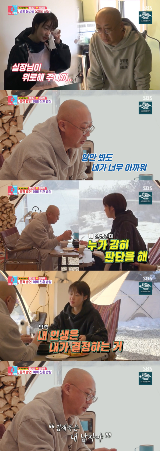 하지만 김재욱은 최여진을 향해 "(결혼은) 연애와 다르다. 정말 한번 신중하게 잘 생각해 봐라. 아무리 봐도 네가 아깝다. 우리 엄마도 네가 아깝다고 하지 않냐"고 걱정되는 마음을 연신 드러냈다.